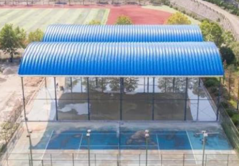 南京财经大学风雨网球?。何巳檬ι谝辜湟材芴逖橥蛟硕睦秩?,学校倾力打造了风雨网球场,该网球场位于仙林校区中苑运动场东侧,与原来中苑网球场相连,共两片标准场地,整体设计完全满足专业训练、比赛要求。风雨棚主体为彩钢无梁拱顶结构,防风防雨,场地为专业丙烯酸地面,耐磨防滑,500瓦led运动场地专用灯光,让网球运动不再有白天黑夜的限制。...