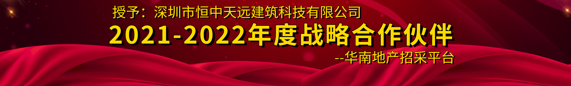 2021年10月30日,"2021华南地产招采平台年度盛典"在奥园喜来登酒店隆重召开,深圳市恒中天远建筑科技有限公司受邀参加,并在被主办方授予“2021-2022年度战略合作伙伴”。