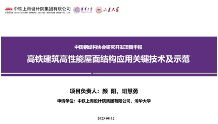 2023年8月12日下午,中国钢结构协会组织召开研究开发项目“高铁建筑高性能屋面结构应用关键技术及示范”立项评审会。该项目由中铁上海设计院集团有限公司和清华大学联合牵头申报,山东大学、中国铁建大桥工程局集团有限公司、中国铁路上海局集团有限公司、沪杭铁路客运专线股份有限公司、邢台路桥千山桥梁构件有限责任公司、扬州市综合交通运输学会、扬州市交通建设管理有限责任公司等单位......