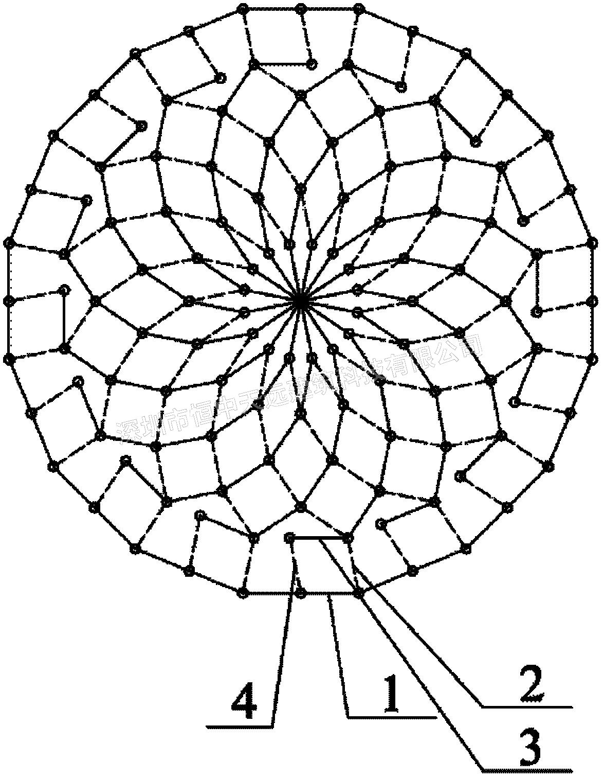 径向开合屋盖的基本组成单元是折叠杆剪切单元,该折叠杆剪切单元由传统剪切单元改进,该折叠杆剪切单元由相同的两个弯曲部件通过销路节点在中间连接,两个弯曲杆绕着销路节点...