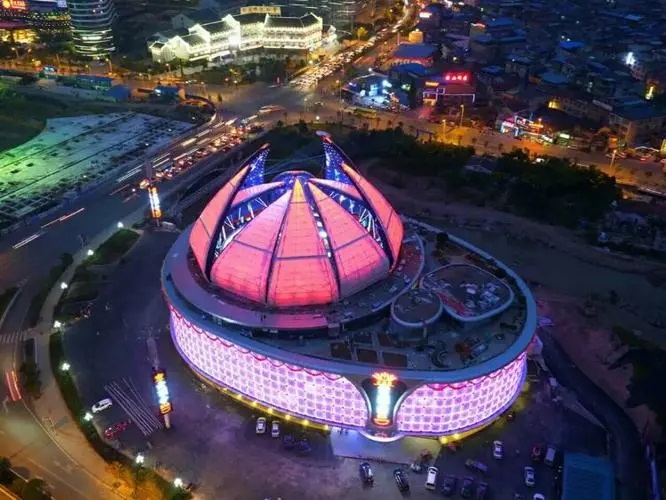 全球最大的酒吧云顶会,酒吧外形似巨型飞碟,是世界第一套直径跨度45米的液压自动开合屋顶,穹顶开启时宛如盛开的巨大的莲花,穹顶闭合时,形似一颗巨大的夜明珠照亮四周。...