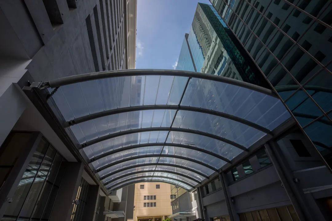 Panorama办公大楼是一座混合用途的85层摩天大楼,位于迈阿密市中心。5000平方英尺的膜结构膜被拉伸在涂漆的结构钢上,使用铝挤压的可调节框架系统,该系统位于天棚两侧从建筑中延伸出来的柱子上。...